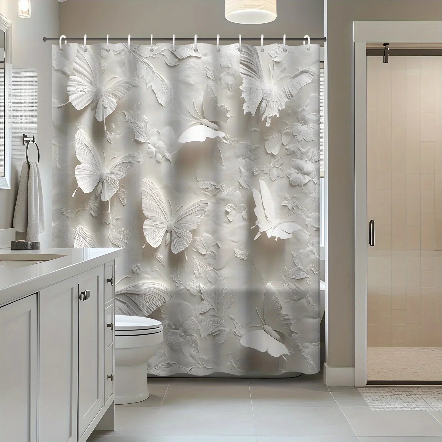 1pc White Theme Modern Butterfly Shower Curtain